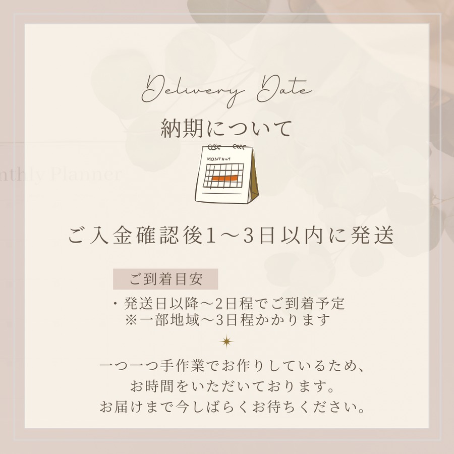・ご入金確認後、1〜3日以内に発送となります